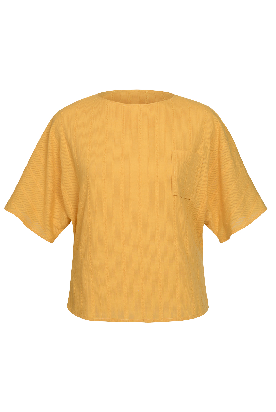 Лаконичная блуза из хлопка станет достойным ярким акцентом практичекси в любом гардеробе. Цельнокроеный рукав абсолютно не стесняет движений. В качестве декоративной детали предусмотрен небольшой накладной карман.