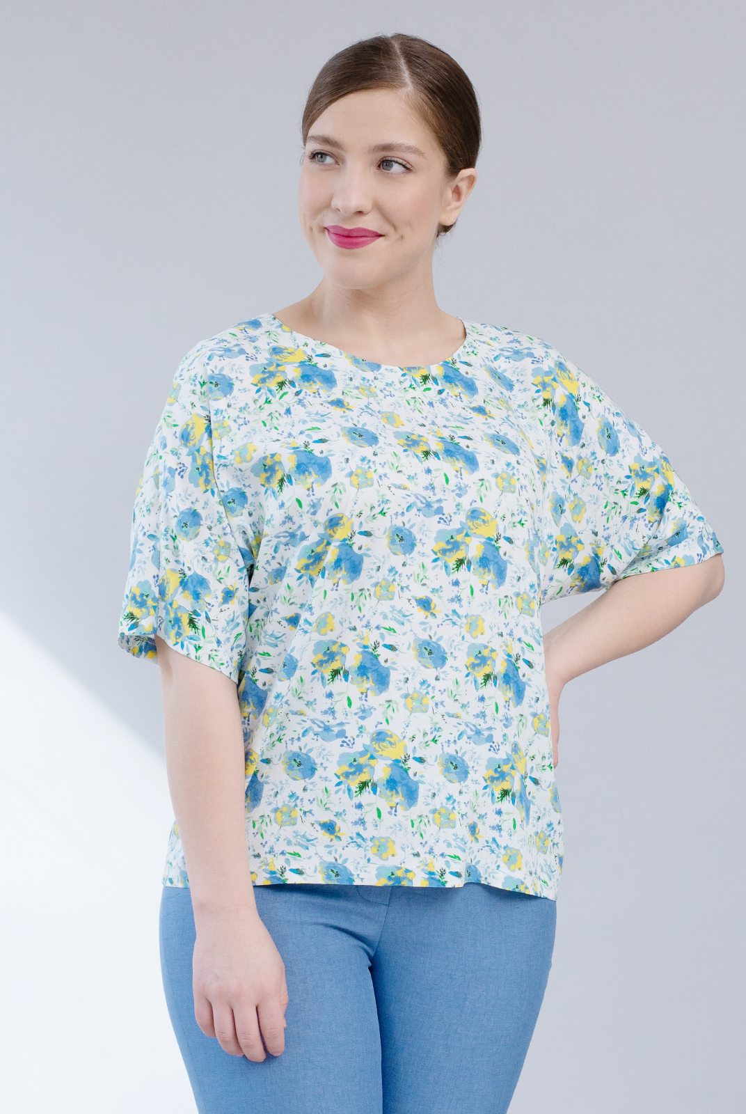 Блузка женская 2165ЮПБ, голуб.цветок #40ГЦ092165ЮПБ