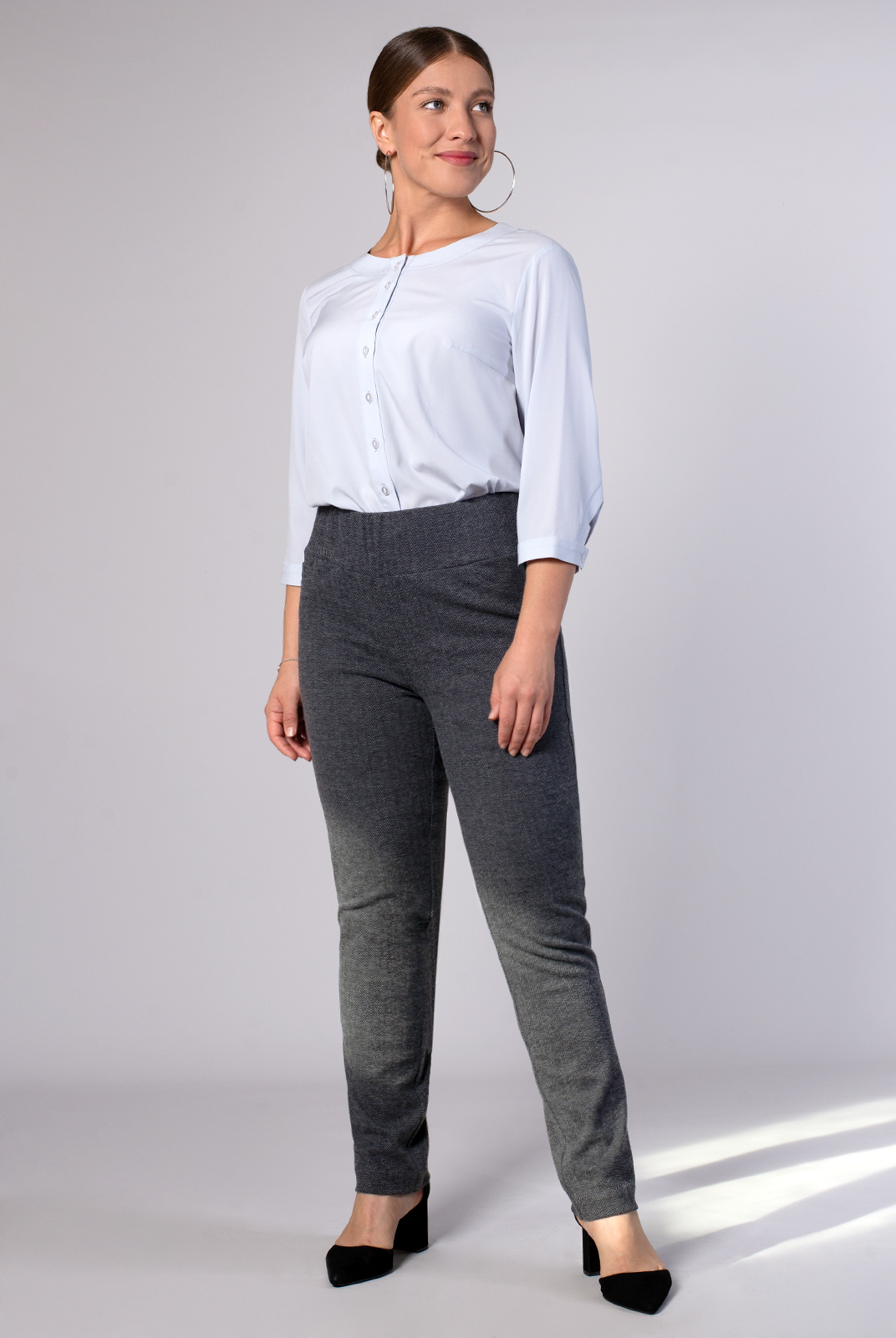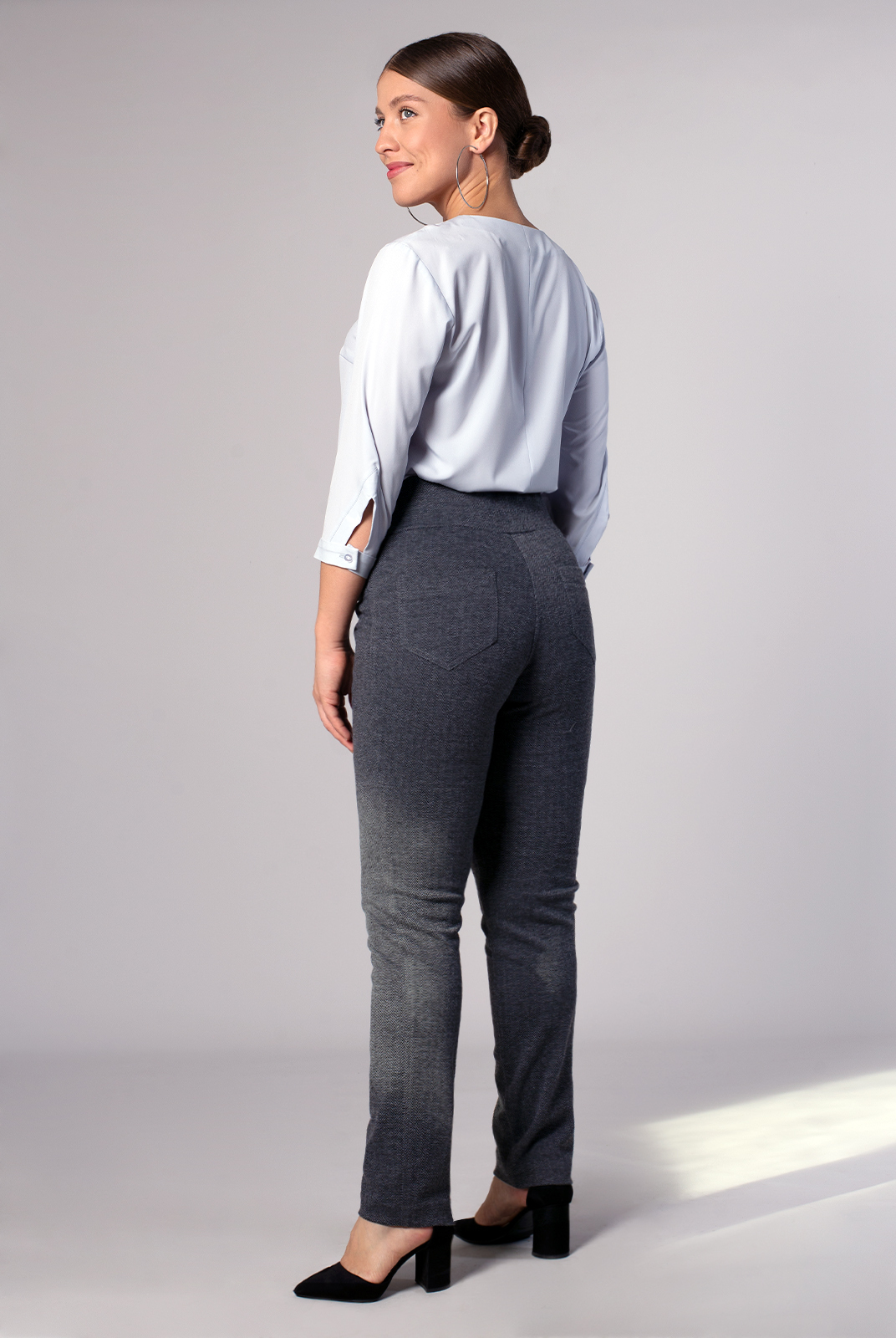 Узкие брюки призванные подчеркнуть достоинства фигуры.