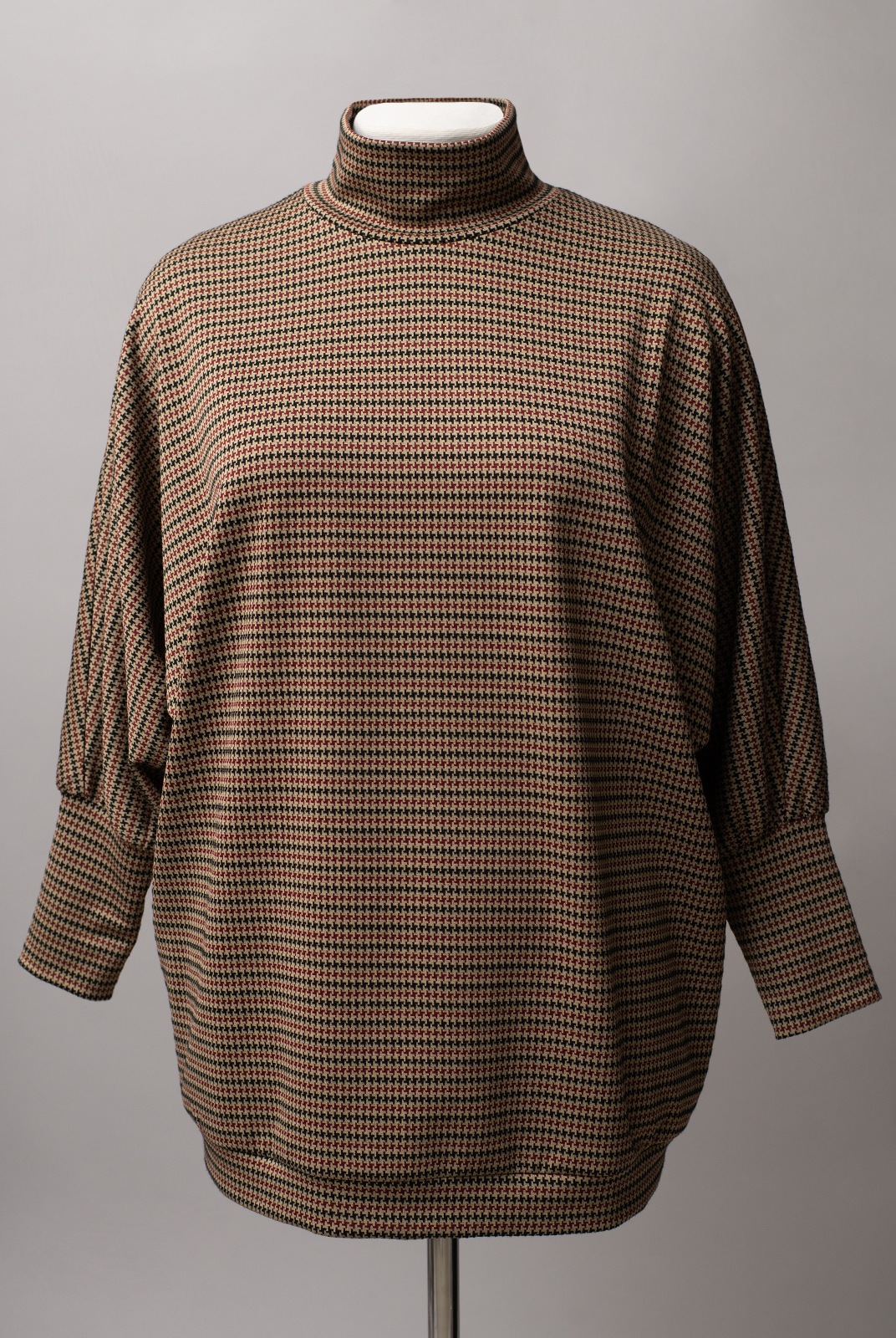 Джемпер из трикотажа станет отличной базовой моделью в осенне-зимнем гардеробе. Плотно прилегающий вортник и широкие манжеты обеспечат комфорт и уют в холодное время года. Модель будет смотреться наиболее гармонично с брюками вишневого оттенка из той же капсулы. В качестве альтернативы - лаконичные комплекты на основе бежево-коричневой гаммы.