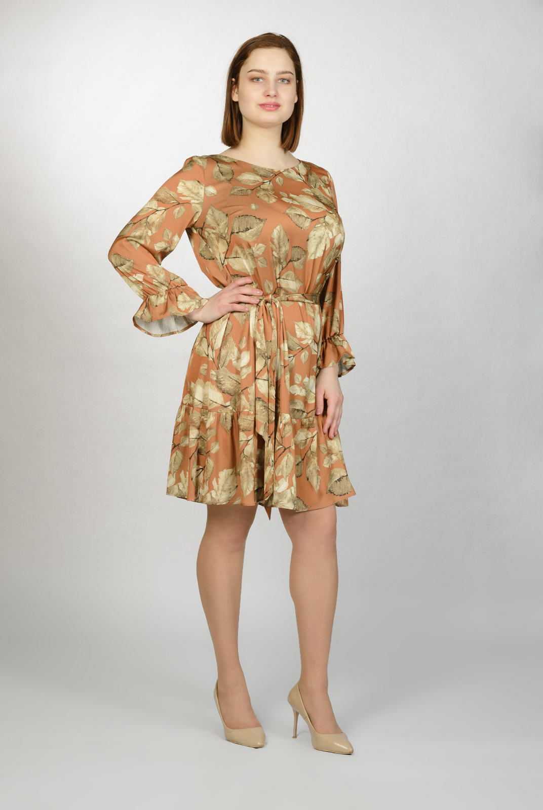 Легкое платье из струящейся ткани подойдет на любой тип фигуры , а так же для дружеского торжества . Бант на талии придаст романтизма образу.