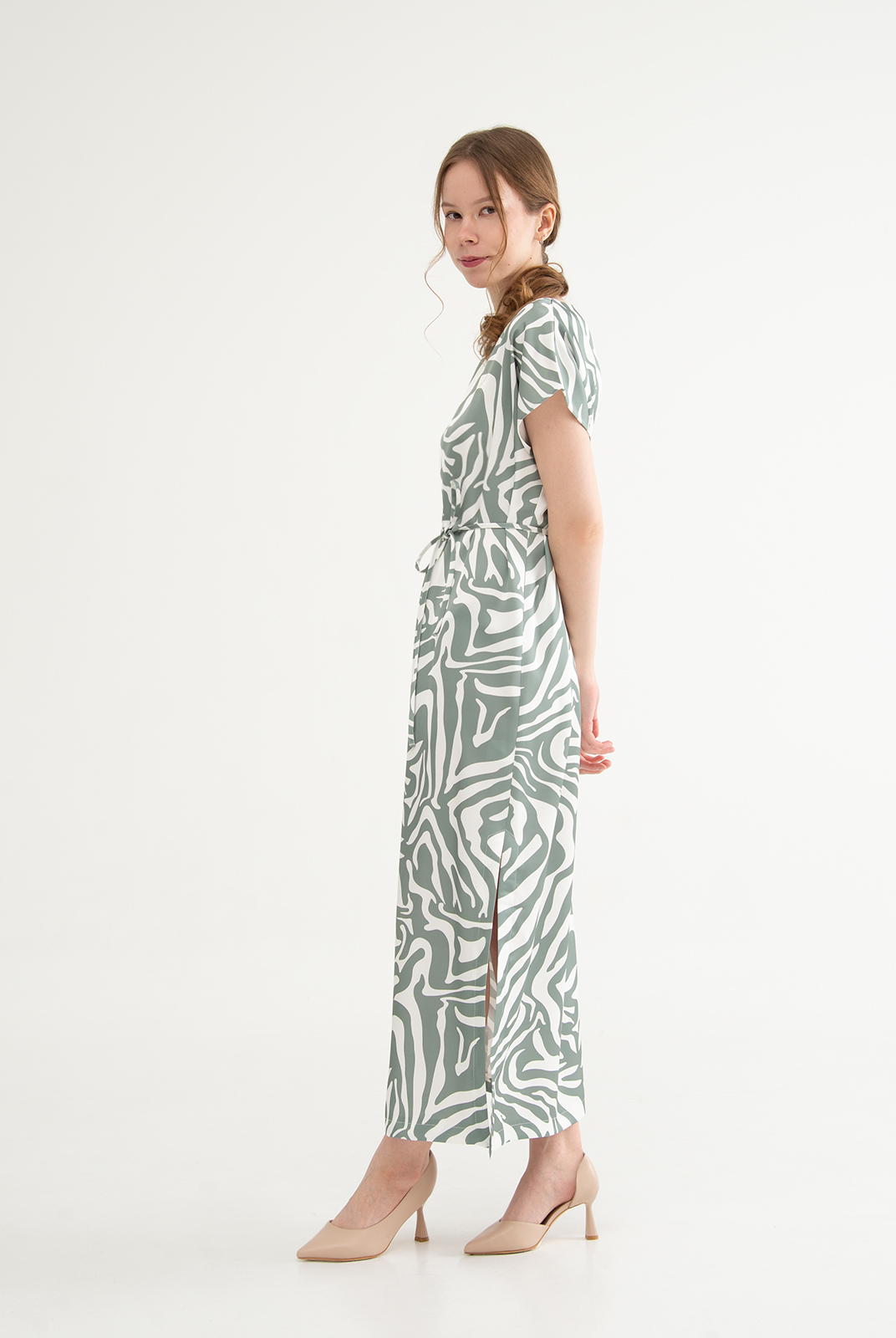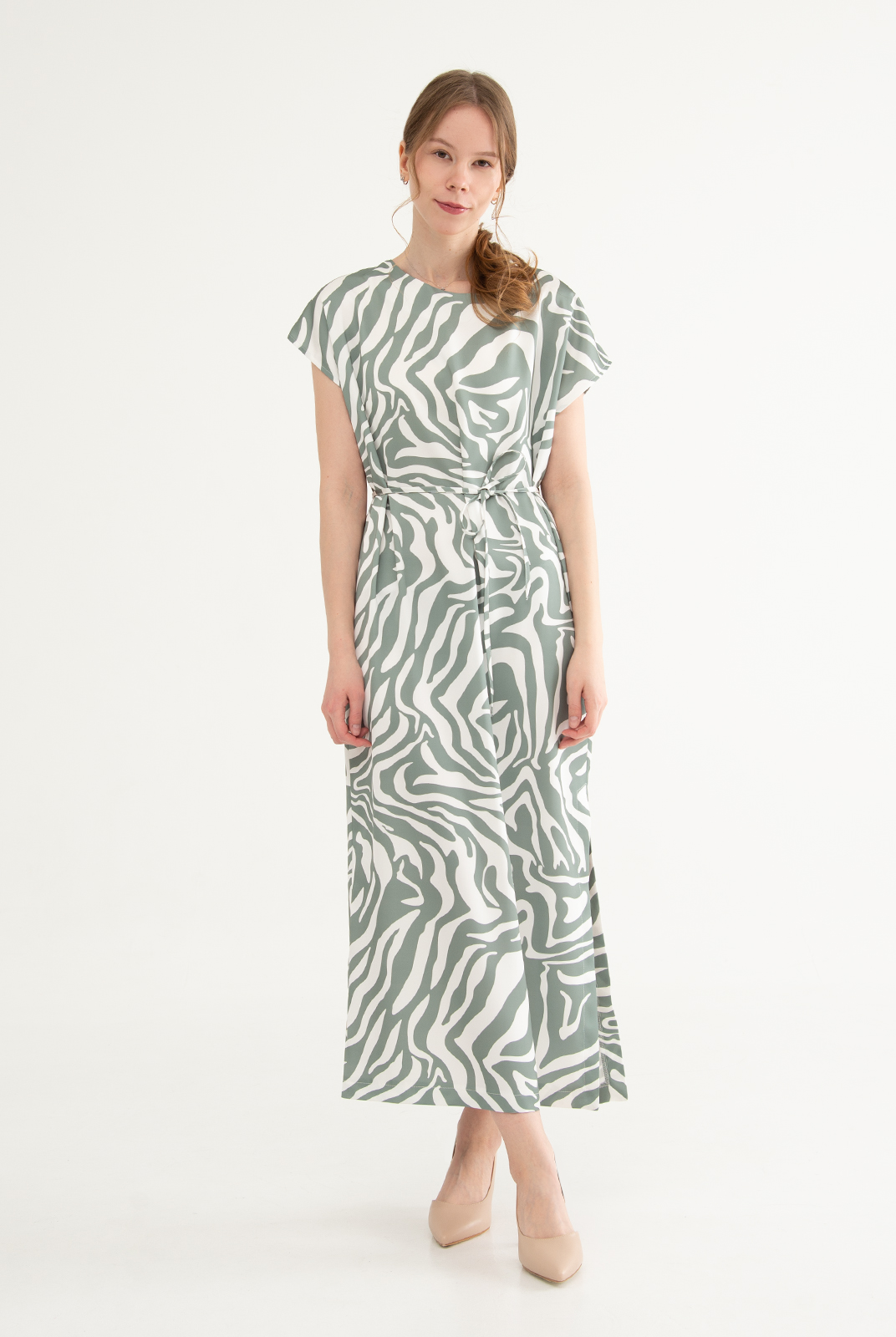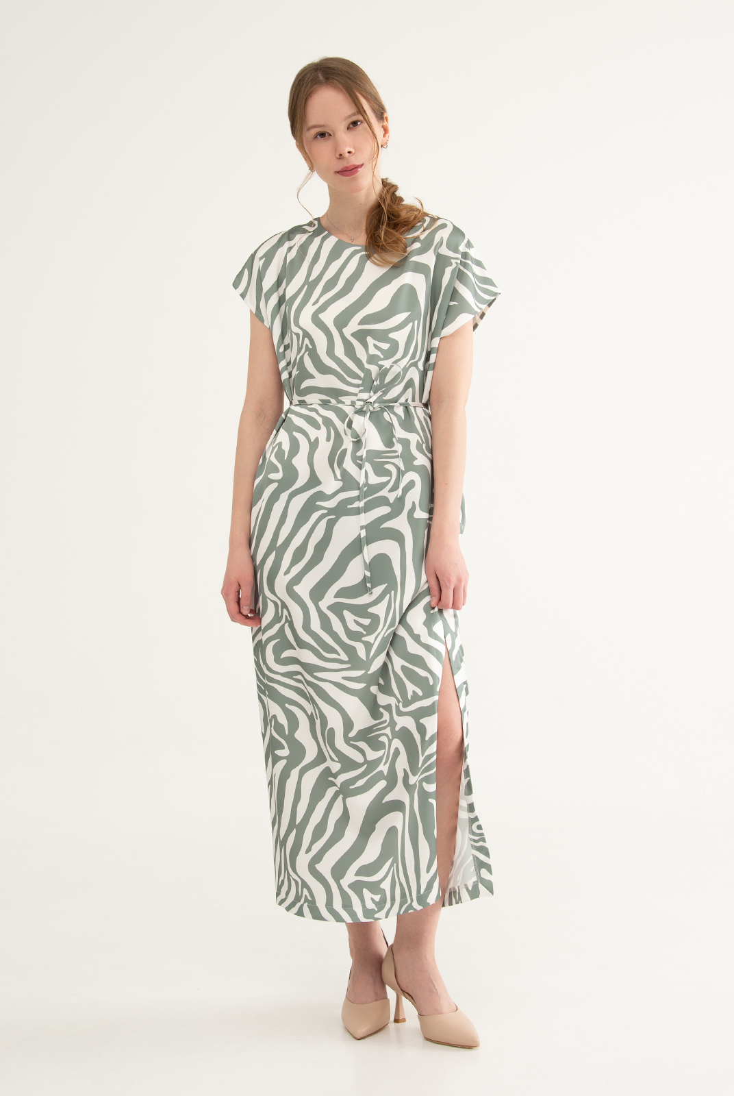 Платье женское 3946АПА, бело-зеленый #270БЗ053946АПА