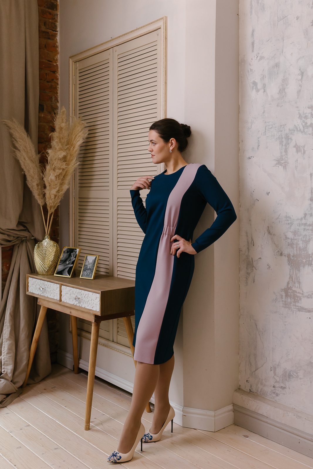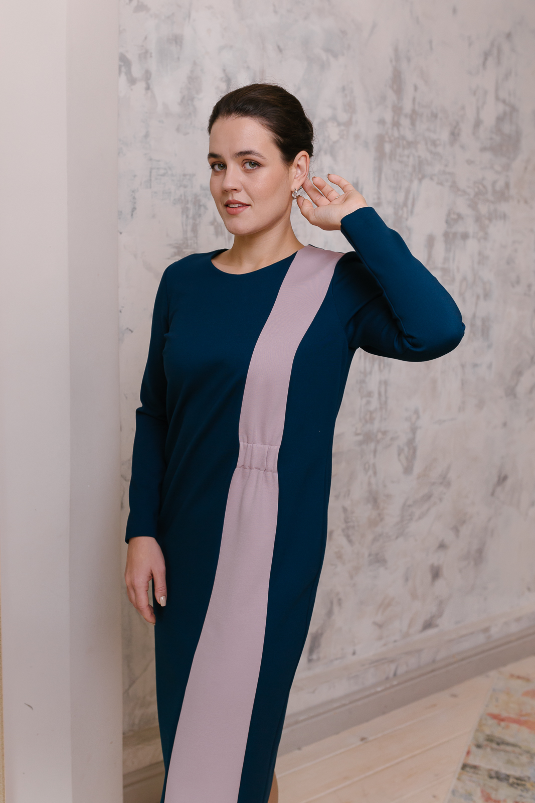 Трикотажное платье актуального изумрудного оттенка Ultramarine Green представляет собой изысканный баланс между простотой и оригинальностью стиля. Контрастная вставка нежно-розового цвета визуально вытягивает пропорции фигуры. Полуприлегающий силуэт мягко обрисовывает контуры фигуры, что вполне соответствует женственному стилю lady like.|