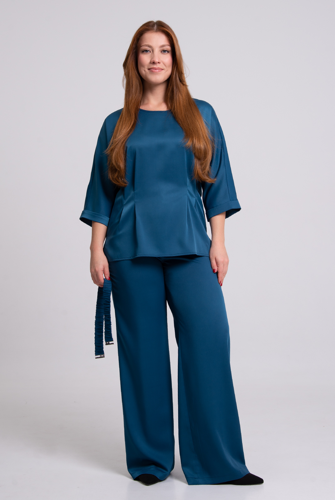 Вытачки: по переду по 2 мягких защипа в области талии