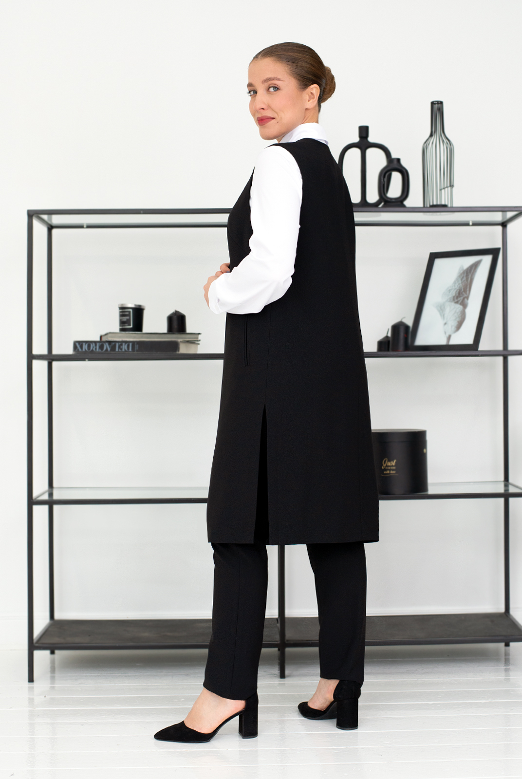 Удлиненный жилет с лацканами создаст стильный и модный образ.|