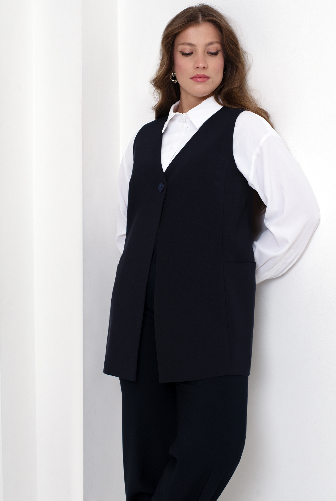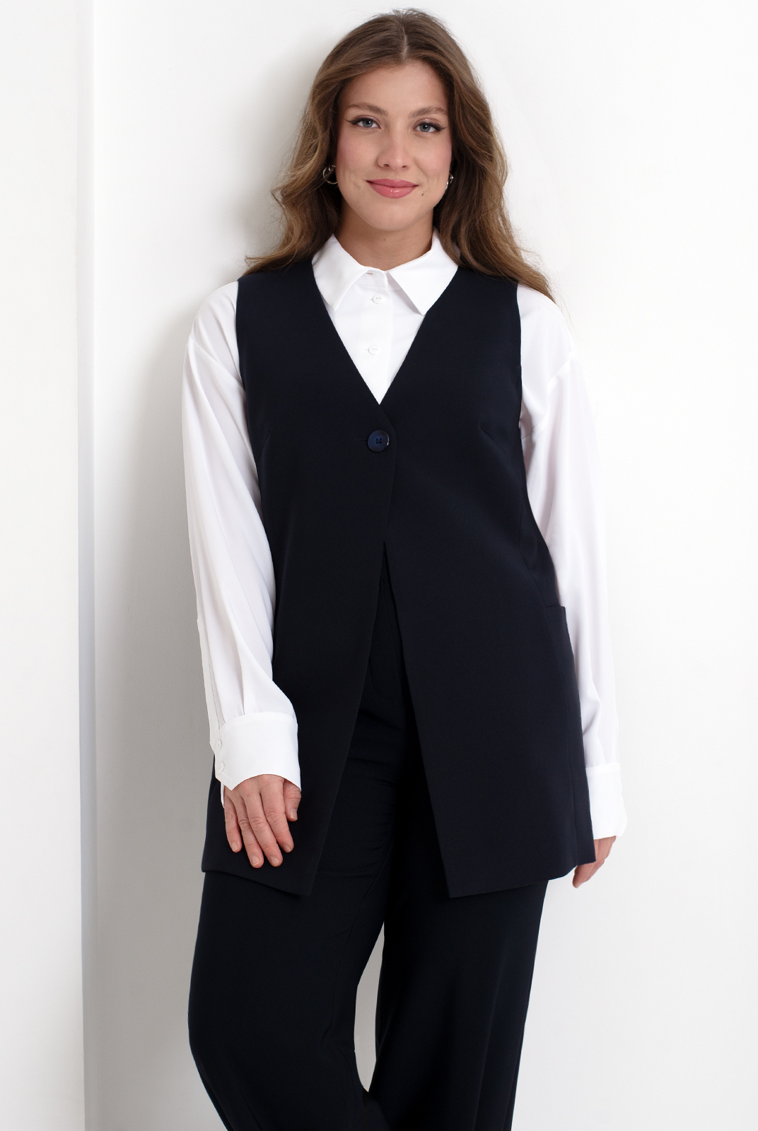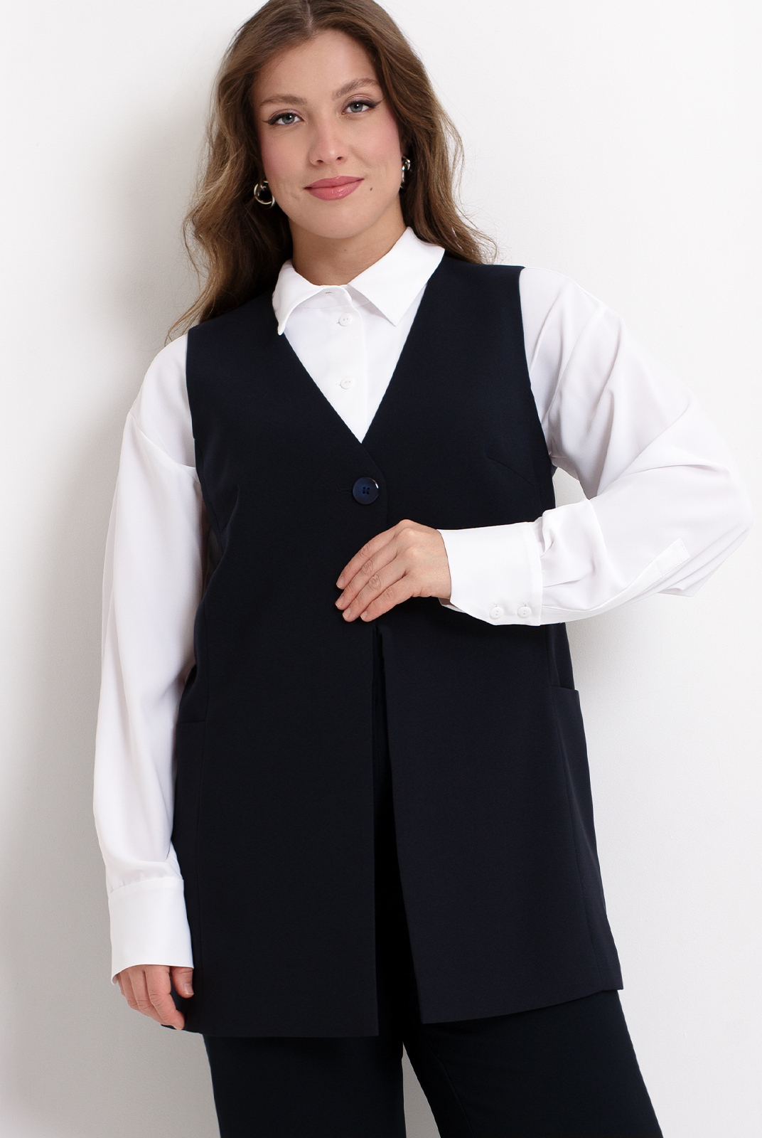 Удлинённый жилет 2980АЕ, Тёмно тёмно син #70ТТСи062980АЕ