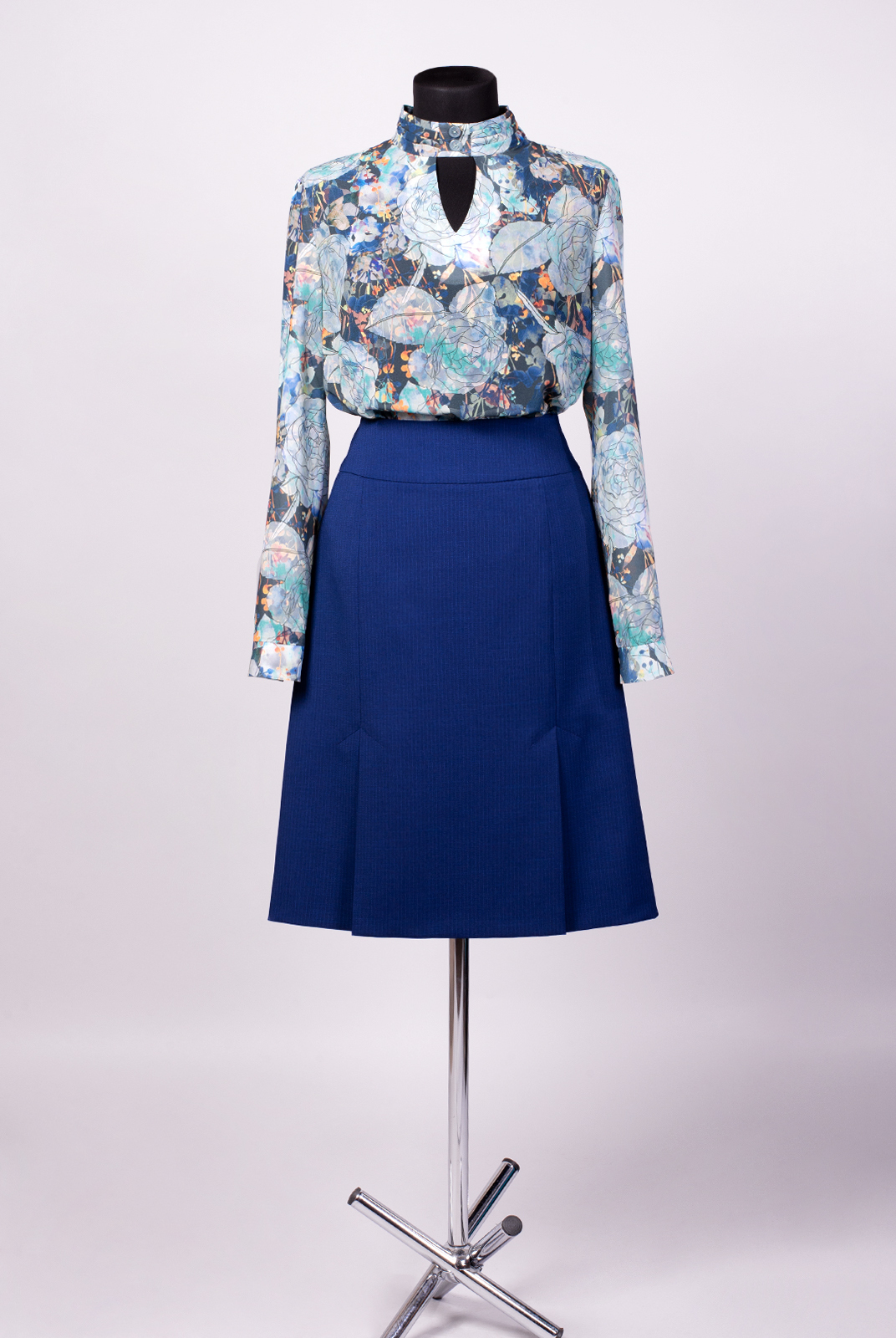 Юбка в складку является достойным примером элегантной классики. В комплекте с жакетом она будет выглядеть наиболее лаконично и статусно. Актуальный оттенок синего придает модели благородное звучание. В тандеме с разнообразными блузками юбка будет звучать каждый раз по-новому.|