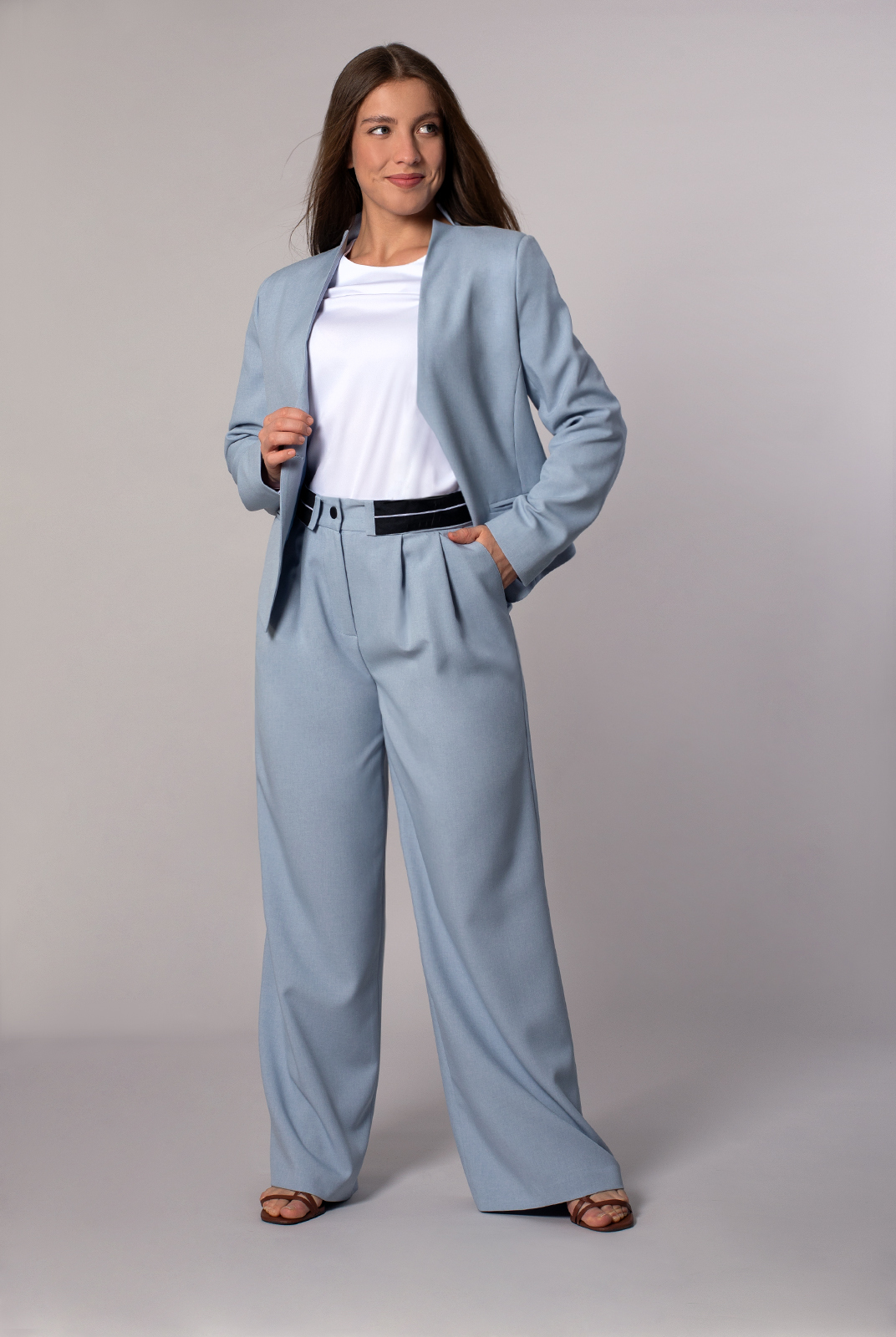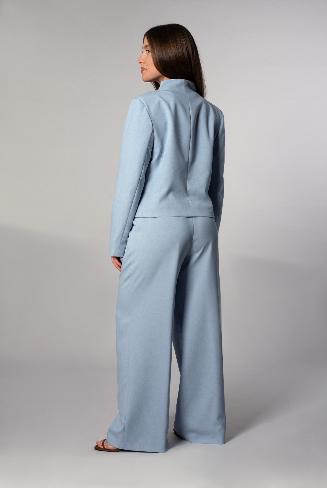 Воротник: цельнокроенная стойка с разрезами по плечевым швам